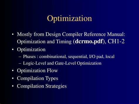 Currently you are looking for an Design Compiler Optimization Reference Manual example of which we provide here inside some form of document formats many of these as PDF, Doc, Power Point, and also images of which will make it simpler for you to create an Design Compiler Optimization Reference Manual yourself. For a clearer look, you can open several examples below. All of the good examples about Design Compiler Optimization Reference Manual with this website, we get from a number of sources so you may create a better document of your own.